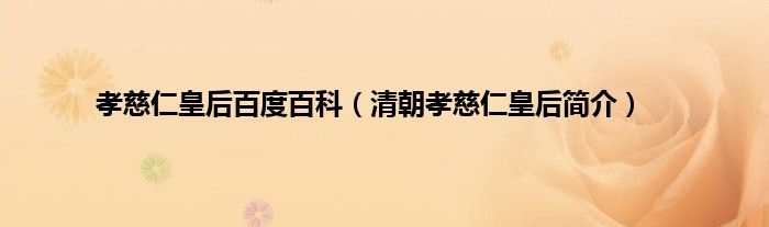大家好,孝慈仁皇后百度百科,清朝孝慈仁皇后简介很多人还不知道,现在让我们一起来看看吧!