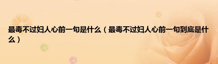 本文,最毒不过妇人心前一句是什么,最毒不过妇人心前一句到底是什么到此就分享完毕,希望对大家有所帮助。