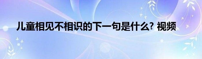 本文,儿童相见不相识的下一句是什么? 视频到此就分享完毕,希望对大家有所帮助。