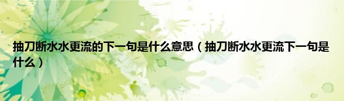 本文,抽刀断水水更流的下一句是什么意思,抽刀断水水更流下一句是什么到此就分享完毕,希望对大家有所帮助。