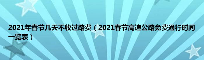 1、 2021年春节几天不收过路费 2021春节高速公路免费通行时间一览表