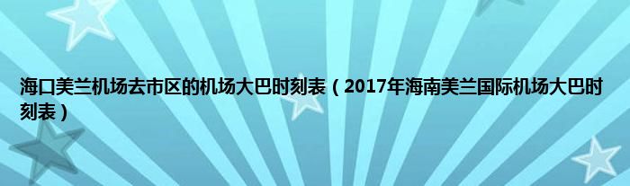 大家好,海口美兰机场去市区的机场大巴时刻表,2017年海南美兰国际机场大巴时刻表很多人还不知道,现在让我们一起来看看吧!