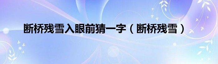 大家好,小问来为大家解答以上问题。断桥残雪入眼前猜一字,断桥残雪这个很多人还不知道,现在让我们一起来看看吧!
