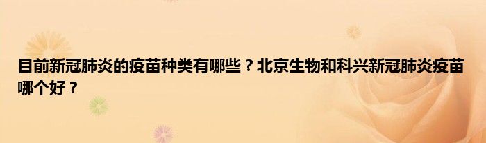 最佳答案大家好,目前新冠肺炎的疫苗种类有哪些?北京生物和科兴新冠肺炎疫苗哪个好?很多人还不知道,现在让我们一起来看看吧! 1.北京生物疫苗和科兴新冠肺炎疫苗哪个好? 北京科兴众信冠冠疫苗和北京生物新冠肺炎疫苗都是安全有效的,受种者可以随意选择。这两种疫苗都非常安全,因为北京生物和科兴的疫苗...