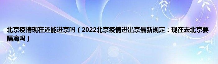 大家好,北京疫情现在还能进京吗,2022北京疫情进出京最新规定:现在去北京要隔离吗很多人还不知道,现在让我们一起来看看吧!