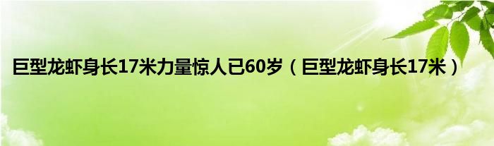 以上就是【巨型龙虾身长17米力量惊人已60岁,巨型龙虾身长17米】相关内容。