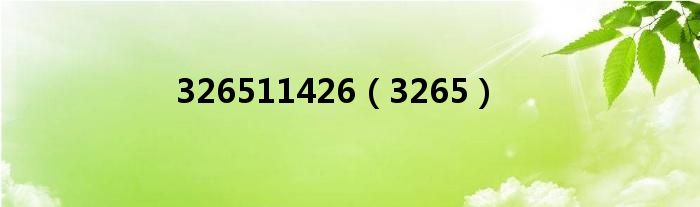 大家好,小问来为大家解答以上问题。326511426,3265这个很多人还不知道,现在让我们一起来看看吧!