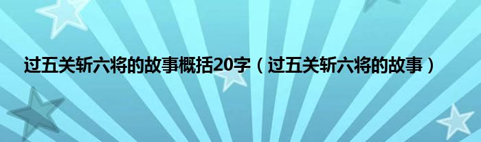 以上就是【过五关斩六将的故事概括20字,过五关斩六将的故事】相关内容。