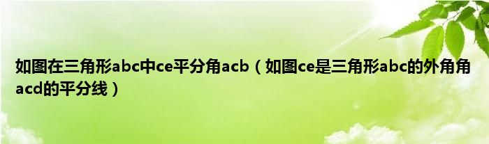 以上就是【如图在三角形abc中ce平分角acb,如图ce是三角形abc的外角角acd的平分线】相关内容。