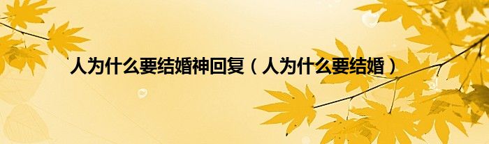 大家好,小问来为大家解答以上问题。人为什么要结婚神回复,人为什么要结婚这个很多人还不知道,现在让我们一起来看看吧!