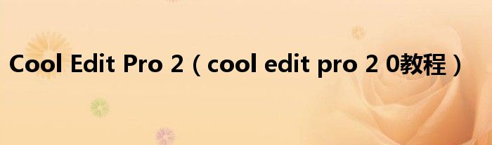 大家好,小问来为大家解答以上问题。Cool Edit Pro 2,cool edit pro 2 0教程这个很多人还不知道,现在让我们一起来看看吧!