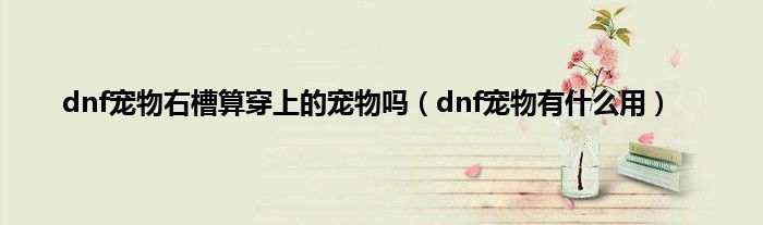 以上就是【dnf宠物右槽算穿上的宠物吗,dnf宠物有什么用】相关内容。