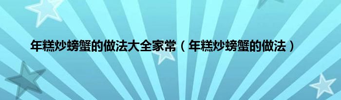 大家好,小问来为大家解答以上问题。年糕炒螃蟹的做法大全家常,年糕炒螃蟹的做法这个很多人还不知道,现在让我们一起来看看吧!