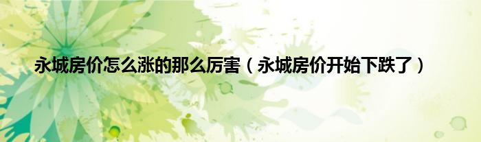 以上就是【永城房价怎么涨的那么厉害,永城房价开始下跌了】相关内容。