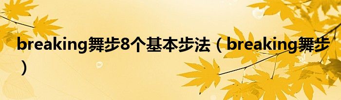 以上就是【breaking舞步8个基本步法,breaking舞步】相关内容。