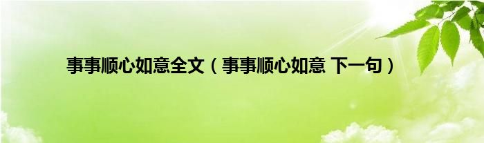 以上就是【事事顺心如意全文,事事顺心如意 下一句】相关内容。