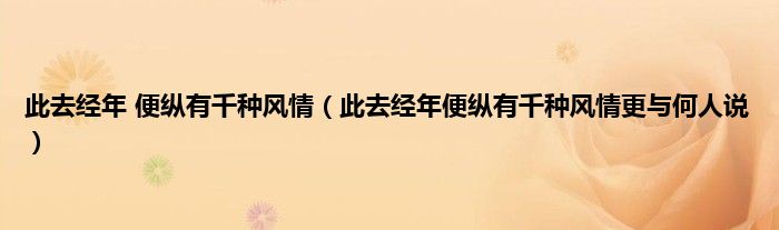 大家好,小问来为大家解答以上问题。此去经年 便纵有千种风情,此去经年便纵有千种风情更与何人说这个很多人还不知道,现在让我们一起来看看吧!