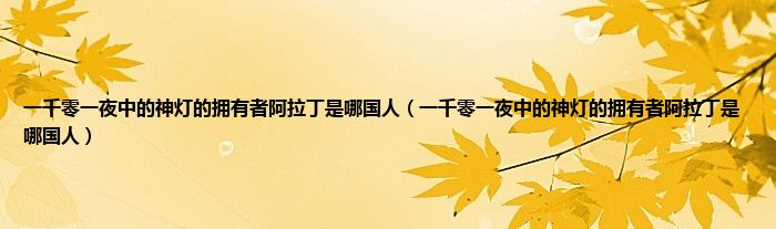 以上就是【一千零一夜中的神灯的拥有者阿拉丁是哪国人,一千零一夜中的神灯的拥有者阿拉丁是哪国人】相关内容。