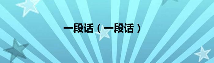 大家好,小问来为大家解答以上问题。一段话,一段话这个很多人还不知道,现在让我们一起来看看吧!