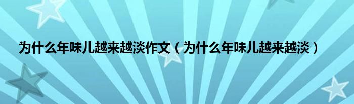 大家好,小问来为大家解答以上问题。为什么年味儿越来越淡作文,为什么年味儿越来越淡这个很多人还不知道,现在让我们一起来看看吧!