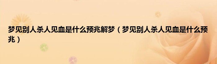 本文梦见别人杀人见血是什么预兆解梦,梦见别人杀人见血是什么预兆到此分享完毕,希望对大家有所帮助。