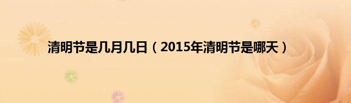 大家好,综合小编来为大家讲解下。清明节是几月几日,2015年清明节是哪天这个很多人还不知道,现在让我们一起来看看吧!