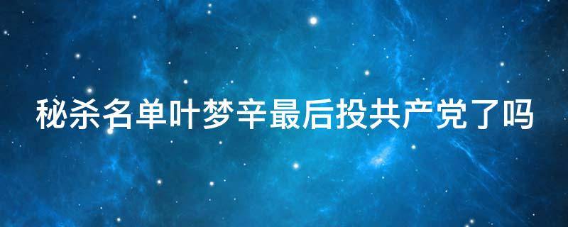 秘杀名单叶梦辛最后投共产党了,因为叶梦辛的身份本身就是共产党,是保密局上海站的特工,最后为保护沈剑秋被林怡所杀。《秘杀名单》是一部谍战剧,由强视传媒出品,刘逢声执导,靳东、李立群、周扬等主演。该剧讲述了以沈剑秋为首的地下党围绕一份暗杀名单,周旋于国民党上海中心局和保密局之间所展开的殊死较量。于2012年1月30日登陆四川卫视上星播出。