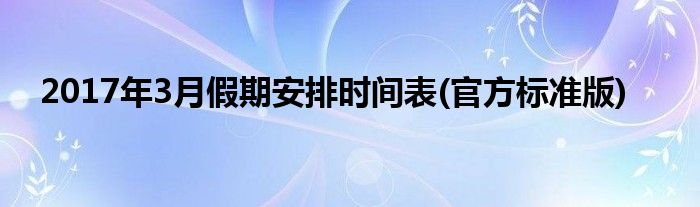 大家好,综合小编来为大家讲解下。2017年3月假期安排时间表(官方标准版)这个很多人还不知道,现在让我们一起来看看吧!