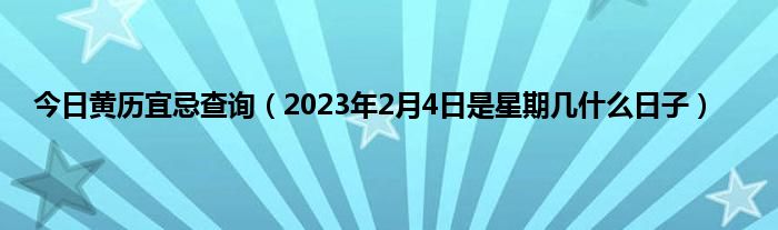 本文今日黄历宜忌查询,2023年2月4日是星期几什么日子到此分享完毕,希望对大家有所帮助。