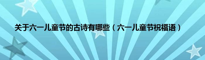本文关于六一儿童节的古诗有哪些,六一儿童节祝福语到此分享完毕,希望对大家有所帮助。