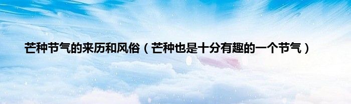 大家好,综合小编来为大家讲解下。芒种节气的来历和风俗,芒种也是十分有趣的一个节气这个很多人还不知道,现在让我们一起来看看吧!
