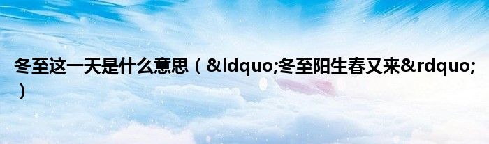 大家好,综合小编来为大家讲解下。冬至这一天是什么意思,“冬至阳生春又来”这个很多人还不知道,现在让我们一起来看看吧!