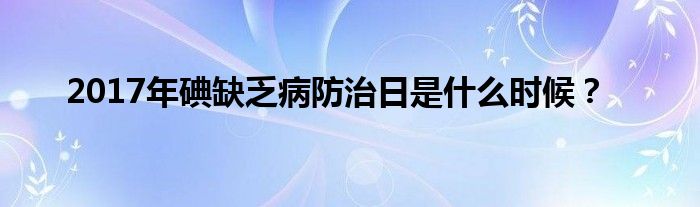 大家好,综合小编来为大家讲解下。2017年碘缺乏病防治日是什么时候?这个很多人还不知道,现在让我们一起来看看吧!