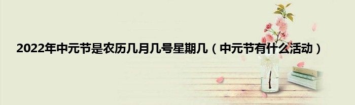 大家好,综合小编来为大家讲解下。2022年中元节是农历几月几号星期几,中元节有什么活动这个很多人还不知道,现在让我们一起来看看吧!