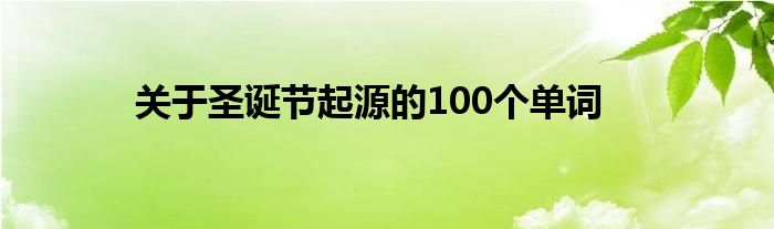 大家好,综合小编来为大家讲解下。关于圣诞节起源的100个单词这个很多人还不知道,现在让我们一起来看看吧!