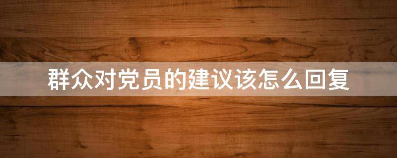 群众对党员的建议可以回复对党员、群众提出的意见和建议的处理结果,各相关部门要以适当形式公开答复。署名提出的意见建议,要由部门或单位负责同志当面答复。帮助老百姓解难事,提高群众幸福指数,实现党员干部的价值。党员,即政党的成员,是赞同某党的纲领和政策、遵守党章、自愿加入该党的成员。党员是构成政党的基石和细胞。党员的数量和质量决定政党的规模和群众基础,党员的素质在很大程度上决定政党的水平。党员有一定的权利和义务,受党纪的约束,在实现党的决议(纲领、路线、方针、政策)方面起重大作用。一般政党都重视吸收、挑选和培训党员,并依靠党员开展活动,以实现该党的主张。各类政党和各国政党的党员资格和作用等有所不同。