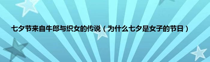 大家好,综合小编来为大家讲解下。七夕节来自牛郎与织女的传说,为什么七夕是女子的节日这个很多人还不知道,现在让我们一起来看看吧!