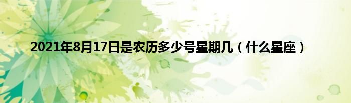 大家好,综合小编来为大家讲解下。2021年8月17日是农历多少号星期几,什么星座这个很多人还不知道,现在让我们一起来看看吧!