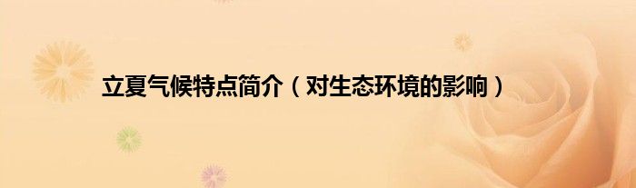 大家好,综合小编来为大家讲解下。立夏气候特点简介,对生态环境的影响这个很多人还不知道,现在让我们一起来看看吧!