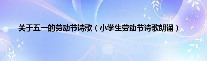 大家好,综合小编来为大家讲解下。关于五一的劳动节诗歌,小学生劳动节诗歌朗诵这个很多人还不知道,现在让我们一起来看看吧!