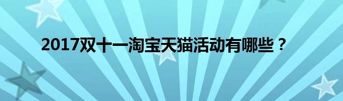 大家好,综合小编来为大家讲解下。2017双十一淘宝天猫活动有哪些?这个很多人还不知道,现在让我们一起来看看吧!