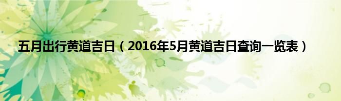 本文五月出行黄道吉日,2016年5月黄道吉日查询一览表到此分享完毕,希望对大家有所帮助。