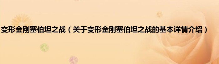 本文关于变形金刚塞伯坦之战的基本详情介绍就讲解完毕,希望对大家有所帮助。