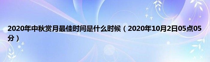 大家好,综合小编来为大家讲解下。2020年中秋赏月最佳时间是什么时候,2020年10月2日05点05分这个很多人还不知道,现在让我们一起来看看吧!