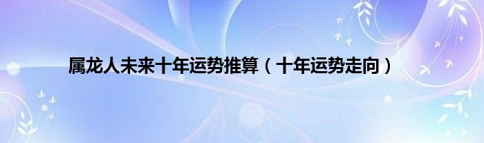 大家好,综合小编来为大家讲解下。属龙人未来十年运势推算,十年运势走向这个很多人还不知道,现在让我们一起来看看吧!