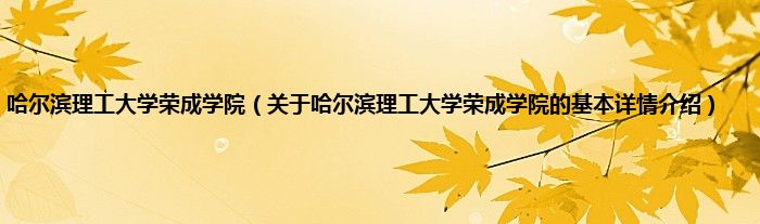 本文关于哈尔滨理工大学荣成学院的基本详情介绍就讲解完毕,希望对大家有所帮助。