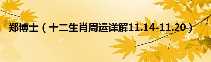 大家好,综合小编来为大家讲解下。郑博士,十二生肖周运详解11.14-11.20这个很多人还不知道,现在让我们一起来看看吧!