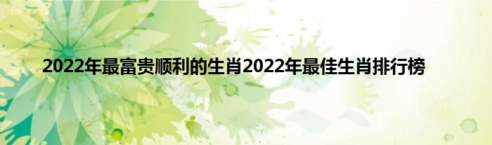 本文2022年最富贵顺利的生肖2022年最佳生肖排行榜到此分享完毕,希望对大家有所帮助。