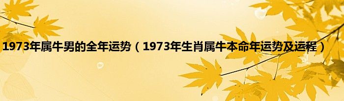 本文1973年属牛男的全年运势,1973年生肖属牛本命年运势及运程到此分享完毕,希望对大家有所帮助。