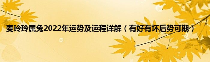 本文麦玲玲属兔2022年运势及运程详解,有好有坏后势可期到此分享完毕,希望对大家有所帮助。